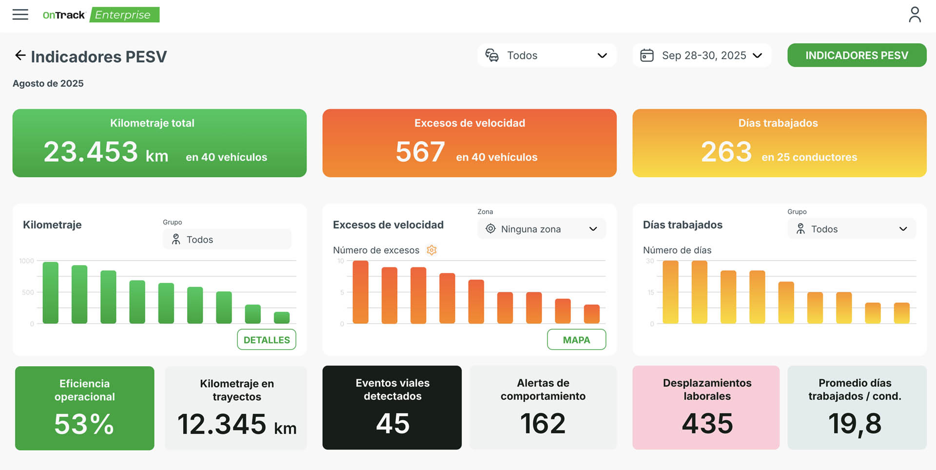 Reportes detallados de recorridos, apertura de puertas y chequeos preoperacionales